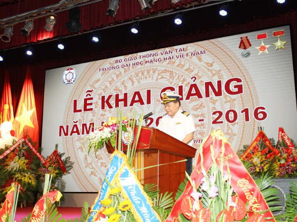 Trong diễn văn khai giảng, thầy NGND.PGS.TS. Lương Công Nhớ- Bí thư Đảng ủy, Hiệu trường Nhà trường đã khái quát những thành tích, kết quả mà tập thể cán bộ, giảng viên, công nhân viên, sinh viên Trường Đại học Hàng hải Việt Nam đã đạt được trong năm học 2014 – 2015 vừa qua đồng thời giao nhiệm vụ cho sinh viên khóa 56. Tổng kết năm học 2014-2015, Hội đồng TĐ-KT Nhà trường đã bình xét được: 35 tập thể Lao động xuất sắc, 37 tập thể Lao động tiên tiến, 151 cá nhân đạt danh hiệu Chiến sĩ thi đua cấp cơ sở, 783 cá nhân đạt danh hiệu Lao động tiên tiến, 200 sinh viên đạt danh hiệu sinh viên tiêu biểu. Trong năm học qua Trường đào tạo được: 3.000 cử nhân và kỹ sư; 317 thạc sĩ, 450 SQQL, 290 SQVH, 9.500 lượt học viên nghiệp vụ Hàng hải, mở thêm 4 chương trình đào tạo đại học. Hiện tại trường đang thực hiện 70 chương trình đào tạo bao gồm : 8 chuyên ngành tiến sĩ, 11 chuyên ngành thạc sĩ, 35 chuyên ngành đại học, 8 chuyên ngành cao đẳng, 10 chương trình dạy nghề, 2 chương trình SQHH và nhiều chương trình ngắn hạn.