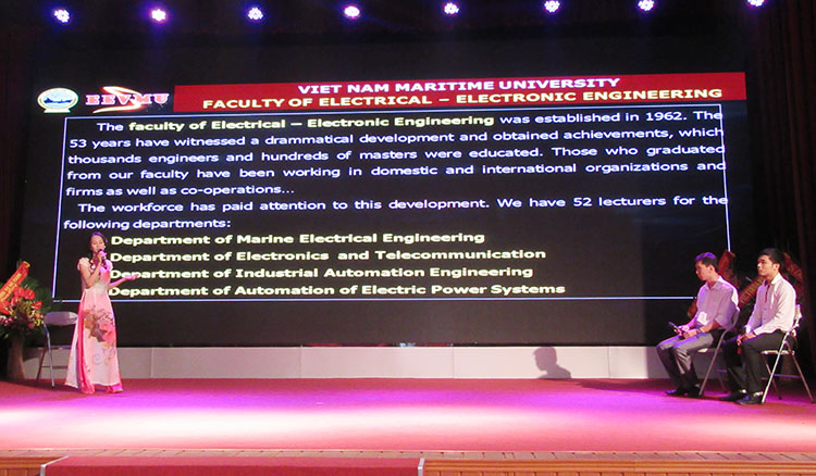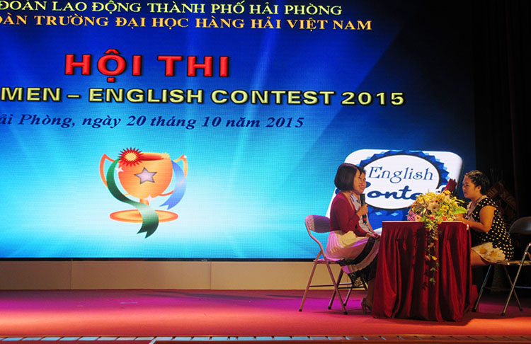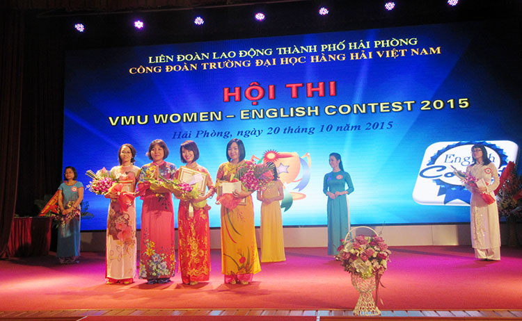 Sau phần tặng hoa chúc mừng cho nữ CB, GV, CNV với phòng trào “Giỏi việc nước, đảm việc nhà” giai đoạn 2011-2015 là Hội thi "VMU Women - English contest". Cuộc thi Tiếng Anh dành cho nữ cán bộ viên chức Trường Đại học Hàng hải Việt Nam đã đi qua 2 vòng thi. Vòng Sơ khảo đã được tổ chức vào ngày 02 tháng 10 với 15 thí sinh. Sau vòng Sơ khảo, Ban Giám khảo đã lựa chọn ra 8 thí sinh có số điểm cao nhất để tham dự vào vòng Chung kết.