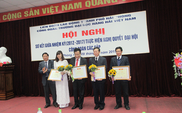 Hội nghị đã lắng nghe tham luận đến từ Khoa Hàng hải, Khoa Điện- Điện tử, Công ty VINIC về việc “phát động hướng ứng có hiệu quả các phong trào nghiên cứu khoa học và lao động sáng tạo”, “Vai trò của công đoàn trong việc phối hợp với chuyên môn triển khai Kế hoạch đào tạo trình độ Thạc sĩ, Tiến sĩ cho CB, GV giai đoạn 2015-2020”, “Công đoàn thực hiện chức năng giám sát để đảm bảo quyền, nghĩa vụ của NLĐ”. Cũng tại Hội nghị, ThS Trương Công Mỹ- UVTV, Chủ nhiệm UBKT Công đoàn, Trưởng phòng CTSV đã đọc các QĐ khen thưởng của LĐLĐ Thành phố (6 cá nhân và 2 tập thể), Tổng LĐLĐ Việt Nam (1 cá nhân), CĐ Giao thông vận tải (1 tập thể và 5 cá nhân), CĐ Giáo dục Việt Nam (1 tập thể và 5 cá nhân).