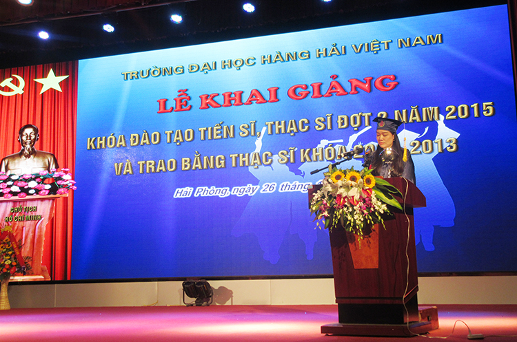 Đại diện các tân thạc sĩ, NCS, học viên cao học đợt 2 năm 2015 cũng có bài phát biểu, chia sẻ niềm tự hào khi được học tập tại một ngôi trường uy tín như Trường Đại học Hàng hải Việt Nam; đồng thời cảm ơn sự quan tâm sâu sắc, gần gũi của Ban lãnh đạo Nhà trường đối với quá trình học tập, nghiên cứu, đời sống của các NCS và  học viên cao học.