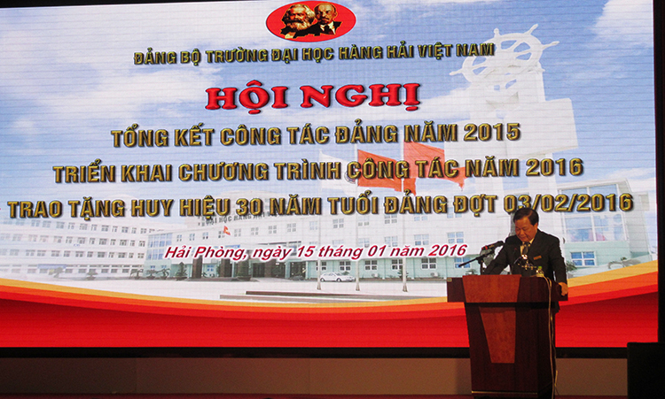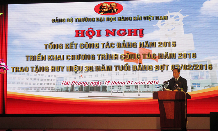 Sáng ngày 15/01/2016, Đảng uỷ Trường Đại học Hàng hải Việt Nam tổ chức Hội nghị tổng kết công tác xây dựng Đảng năm 2015, triển khai chương trình công tác năm 2016; trao tặng Huy hiệu Đảng đợt 03/02/2016.