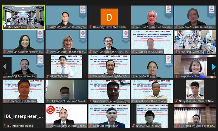 08h00 (theo giờ Việt Nam) ngày 20/8/2021, tại Trường Đại học Hàng hải Việt Nam đã diễn ra Phiên bế mạc đợt đánh giá ngoài từ xa của 04 chương trình đào tạo theo tiêu chuẩn AUN-QA lần thứ 228. Phiên bế mạc tiếp tục được tổ chức theo hình thức trực tuyến với sự tham dự của TS. Choltis Dhirathiti - Giám đốc điều hành Mạng lưới các Trường Đại học Đông Nam Á (AUN); GS.TS Rosemary Seva (Philippines) - Trưởng đoàn đánh giá AUN-QA; các đánh giá viên chính gồm: PGS.TS. Tan Kay Chuan (Singapore), GS.TS. Patricia Empleo (Philippines), GS.TS. Rosemary Seva (Philippines), PGS.TS. Pornpun Prajaknate (Thái Lan), GS.TS. Rohaida Mohd. Saat (Malaysia), PGS.TS. Amphawan Julsereewong (Thái Lan), TS. Maria Elissa J.Lao (Philippines), TS. Attachai Ueranantasun (Thái Lan); Ban Thư ký AUN-QA gồm: bà Monsiri Chintanavisit và ông Korn Ratanagosoom.