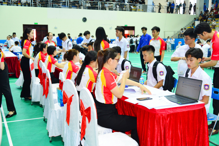 Ngay từ sáng sớm, đông đảo tân sinh viên cùng phụ huynh từ nhiều tỉnh, thành phố trên cả nước đã tập trung về khu Nhà thi đấu đa năng của Trường. Với diện tích hơn 2.000 m², sức chứa khoảng 3.500 chỗ ngồi, Nhà thi đấu được bố trí hợp lý, trang bị đầy đủ các thiết bị cần thiết với hệ thống sơ đồ, bảng chỉ dẫn cùng sự hỗ trợ nhiệt tình của cán bộ, giảng viên và sinh viên tình nguyện đã giúp quá trình nhập học của các tân sinh viên diễn ra thuận lợi, nhanh chóng và an toàn.