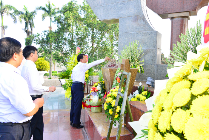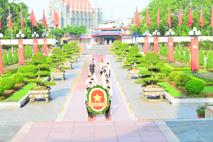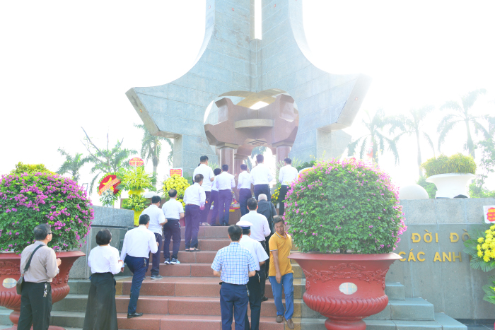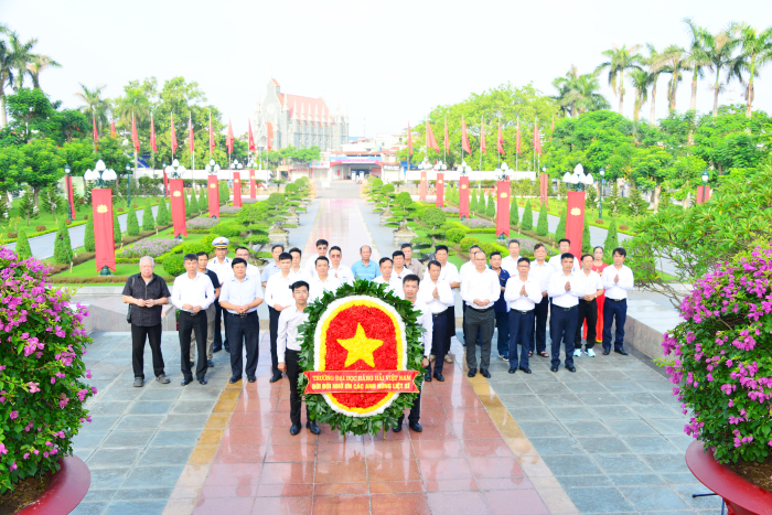 Tham dự lễ viếng có các đồng chí: PGS.TS. Nguyễn Khắc Khiêm - Bí thư Đảng ủy, Chủ tịch Hội đồng Trường; các đồng chí trong thường trực Đảng ủy, thường trực Hội đồng trường, Ban Giám hiệu, Công đoàn, Đoàn Thanh niên, Hội sinh viên Nhà trường, Trưởng các Phòng, Ban, Trung tâm cùng các thành viên “Câu lạc bộ 27/7” của Nhà trường đã đến đặt vòng hoa, làm lễ dâng hương tại Đài tưởng niệm Anh hùng, liệt sĩ Thành phố.
