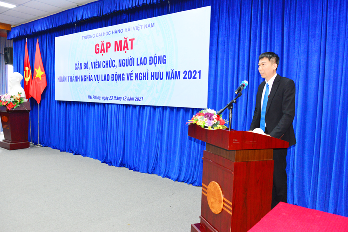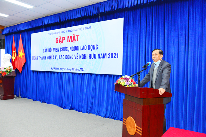 Tại buổi gặp mặt, PGS.TS Phạm Xuân Dương – Phó Bí thư Đảng ủy, Hiệu trưởng Nhà trường thay mặt Đảng ủy, Ban Giám Hiệu Trường Đại học Hàng hải Việt Nam bày tỏ lòng kính trọng và biết ơn của toàn thể CB, GV, CNV tới các đồng chí cán bộ đã có thời gian công tác, cống hiến, đóng góp, xây dựng vào sự phát triển chung của Trường Đại học Hàng hải Việt Nam.