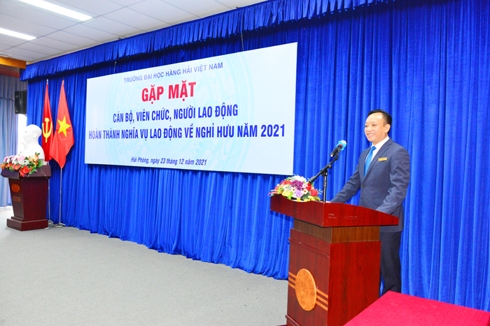 10h30 ngày 23 tháng 12 năm 2021, Trường Đại học Hàng hải Việt Nam đã tổ chức tiếp xúc thân mật với 18 đồng chí được nghỉ hưu năm 2021 nhằm bày tỏ lòng tri ân tới các đồng chí trong những năm công tác tại Trường đã có những đóng góp cho sự nghiệp giáo dục và đào tạo, góp phần tạo nên vị thế của Nhà trường ở trong nước, khu vực và quốc tế.