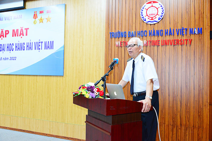 Tại buổi gặp mặt, PGS.TS Phạm Xuân Dương - Phó Bí thư Đảng ủy, Hiệu trưởng Nhà trường thay mặt Đảng ủy, Ban Giám Hiệu Trường Đại học Hàng hải Việt Nam bày tỏ lòng kính trọng và biết ơn của toàn thể CB, GV, CNV tới các hội viên đã có thời gian công tác, cống hiến, đóng góp, xây dựng vào sự phát triển chung đồng thời báo cáo một số hoạt động điển hình như công tác đào tạo và nghiên cứu khoa học, quan hệ quốc tế,…trong những năm vừa qua. Qua đây thầy Hiệu trưởng bày tỏ mong muốn tiếp tục nhận được sự cộng tác, đóng góp ý kiến xây dựng bằng trí tuệ, kinh nghiệm của mình cho sự nghiệp phát triển của Trường trong giai đoạn mới - thời đại chuyển đổi số đang phát triển.