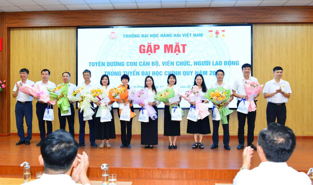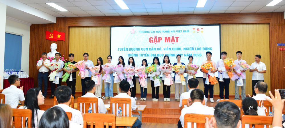 Trong không khí hân hoan của những ngày đầu năm học mới 2025 - 2026, sáng 10/9/2025, Trường Đại học Hàng hải Việt Nam đã tổ chức Gặp mặt tuyên dương con cán bộ, viên chức, người lao động (CB, VC, NLĐ) trúng tuyển đại học chính quy năm 2025. Đây là bước ngoặt lớn trong cuộc đời đối với mỗi tân sinh viên vừa bước qua ngưỡng cửa giảng đường đại học; niềm vui ấy không chỉ của riêng các em mà còn là mong mỏi của gia đình, Nhà trường và toàn xã hội.