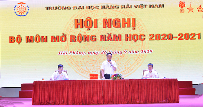 Thực hiện chương trình công tác năm học, 08h00 ngày 26/09/2020, Trường Đại học Hàng hải Việt Nam đã tổ chức Hội nghị bộ môn mở rộng năm học 2020-2021 dưới sự chủ trì của PGS.TS Phạm Xuân Dương – Phó Bí thư Đảng ủy, Hiệu trưởng Nhà trường.
