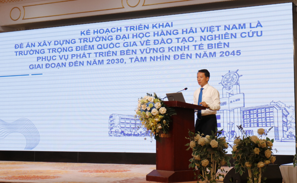 Phát biểu triển khai Đề án “trường trọng điểm quốc gia” tại Hội nghị, PGS.TS. Nguyễn Thanh Sơn - Phó Hiệu trưởng thường trực Nhà trường khẳng định: “Việc triển khai Đề án xây dựng Trường trọng điểm quốc gia không chỉ là nhiệm vụ của Hội đồng trường, Ban Giám hiệu mà là trách nhiệm của toàn thể cán bộ, giảng viên, người lao động Nhà trường. Đây là bước ngoặt quan trọng để Trường khẳng định vị thế tiên phong trong đào tạo, nghiên cứu và chuyển giao công nghệ phục vụ sự nghiệp phát triển kinh tế biển Việt Nam.”