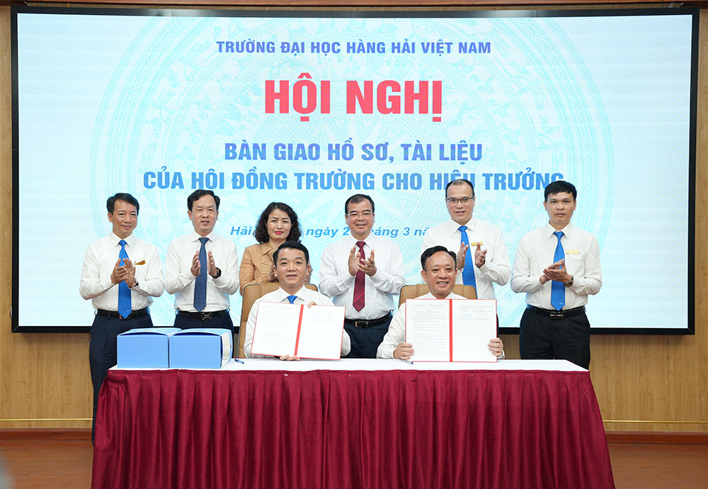 Cũng tại Hội nghị, Hội đồng trường đã bàn giao đầy đủ các hồ sơ, tài liệu phản ánh toàn diện quá trình hoạt động của Hội đồng trường trong suốt nhiệm kỳ 2020-2025 cho đến ngày 01/01/2026. Nội dung bàn giao bao gồm hệ thống nghị quyết của Hội đồng trường; hồ sơ liên quan đến tổ chức bộ máy, công tác nhân sự; các văn bản về chiến lược phát triển, quy chế, quy định của Trường Đại học Hàng hải Việt Nam; tài liệu giám sát, chỉ đạo hoạt động của Hiệu trưởng và bộ máy điều hành cùng nhiều hồ sơ, tài liệu chuyên môn quan trọng khác. Đây là nguồn tư liệu có giá trị, phục vụ công tác điều hành, kế thừa và phát triển Nhà trường trong giai đoạn tiếp theo.