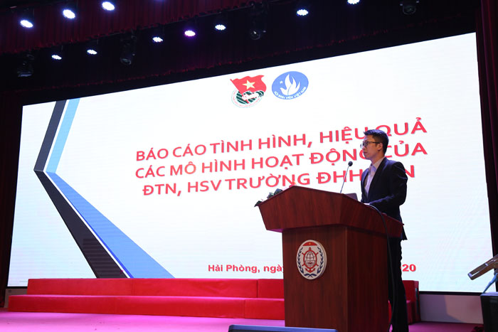 Đồng chí Nguyễn Lê Mạnh Cường, Phó Bí thư Đoàn Thanh niên Trường đã báo cáo các nhiệm vụ trọng tâm và điểm mới trong công tác Đoàn thanh niên, Hội Sinh viên trường
