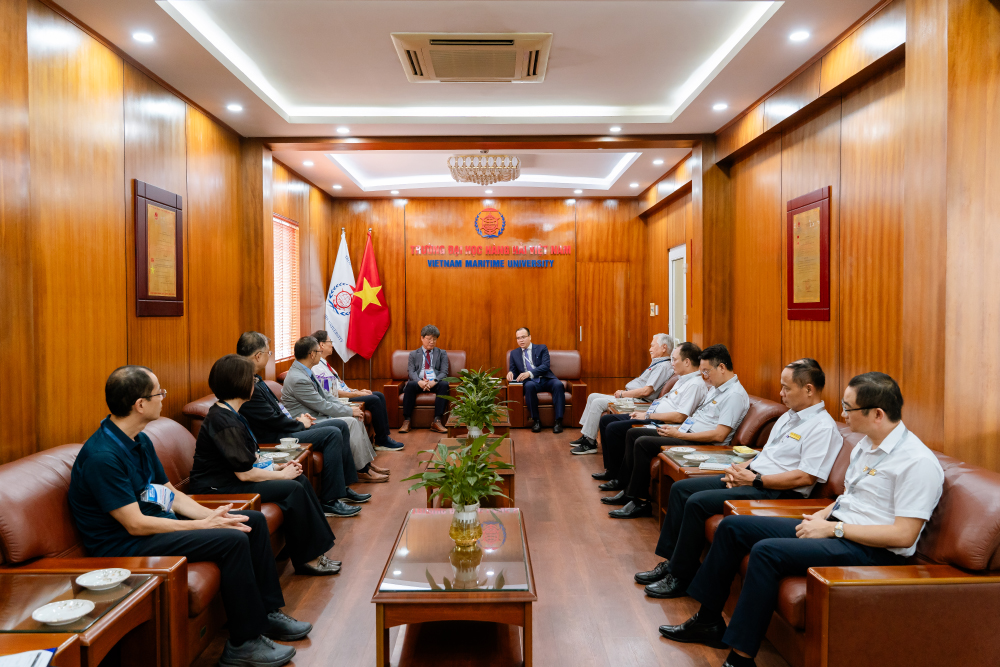 Tại buổi làm việc, PGS.TS. Nguyễn Minh Đức bày tỏ sự vui mừng khi các bên có cơ hội hợp tác tổ chức Hội thảo, đồng thời khẳng định mối quan hệ hợp tác truyền thống giữa Trường Đại học Hàng hải Việt Nam và các đối tác quốc tế. Trong những năm qua, nhiều cán bộ, giảng viên của Nhà trường đã có cơ hội được đào tạo, nghiên cứu tại Hàn Quốc, Nhật Bản, Đài Loan… và khi trở về đã đóng góp tích cực vào sự phát triển của Trường. Bên cạnh đó, Thầy Phó Hiệu trưởng cũng nhấn mạnh vai trò quan trọng của nghiên cứu công nghệ trong công tác đảm bảo an toàn hàng hải, nâng cao năng lực cạnh tranh của ngành. Trong khuôn khổ buổi làm việc, Thầy Phó Hiệu trưởng Nguyễn Minh Đức đã có những đề xuất góp phần tăng cường sự hợp tác giữa các trường thành viên, thúc đẩy các sáng kiến về khoa học và công nghệ, ứng dụng vào thực tiễn trong tương lai.