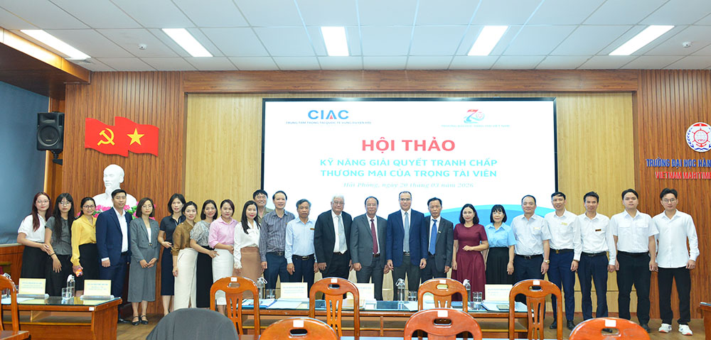 Trong không khí trang trọng, phấn khởi hướng tới kỷ niệm 70 năm Ngày thành lập Trường (01/4/1956 - 01/4/2026), sáng 20/3/2026, Trường Đại học Hàng hải Việt Nam phối hợp cùng Trung tâm Trọng tài quốc tế vùng Duyên hải (CIAC) tổ chức Hội thảo chuyên đề: “Kỹ năng giải quyết tranh chấp thương mại của trọng tài viên”.