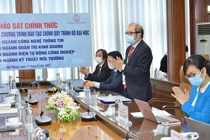 Về phía Trường Đại học Hàng hải Việt Nam có PGS. TS. Phạm Xuân Dương, Phó Bí thư Đảng ủy, Hiệu trưởng Nhà trường, Chủ tịch Hội đồng Tự đánh giá; PGS. TS. Nguyễn Khắc Khiêm – Bí thư Đảng ủy, Chủ tịch Hội đồng Trường; các thầy trong Ban giám hiệu, Trưởng các Khoa, Viện: Công nghệ thông tin, Quản trị tài chính, Điện-Điện tử, Viện Môi trường; Trưởng các phòng: Đào tạo, TC-HC, TT&ĐBCL, các thầy (cô) trong Hội đồng Tự đánh giá và sinh viên tham dự.