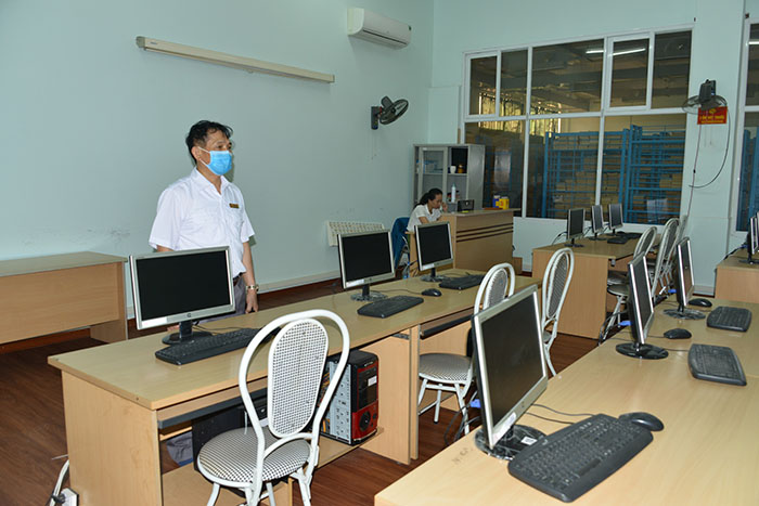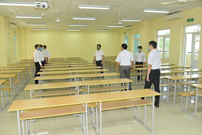 Kiểm tra công tác chuẩn bị CSVC phòng chống dịch Covid-19 để đón sinh viên trở lại học tập.
