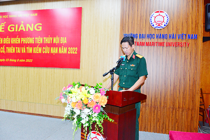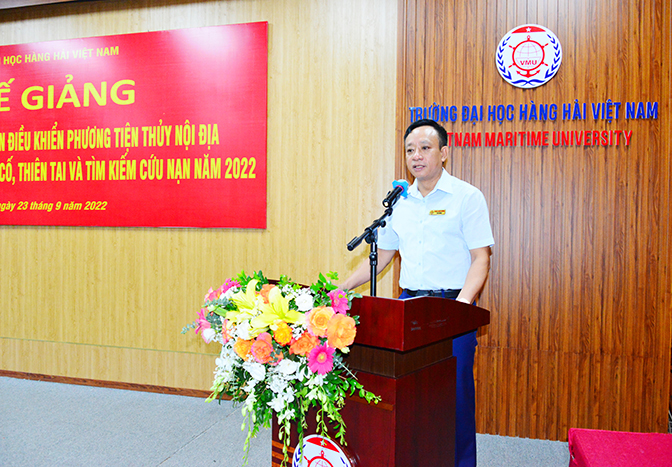 Phát biểu tại Lễ Khai giảng, PGS.TS Phạm Xuân Dương - Hiệu trưởng Nhà trường nhiệt liệt chúc mừng 90 đồng chí học viên tham gia đào tạo tại Trường Đại học Hàng hải Việt Nam - một ngôi trường có bề dầy lịch sử 66 năm xây dựng, hội nhập và phát triển. Nhà trường đã tạo mọi điều kiện tốt nhất để phục vụ các khóa đào tạo như: đội ngũ giảng viên có trình độ chuyên môn cao, cơ sở vật chất hiện đại đáp ứng nhu cầu thực tế đề ra, …