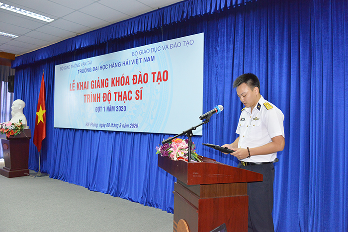 Chiều 08/08/2020, Trường Đại học Hàng hải Việt Nam tổ chức Lễ Khai giảng khóa đào tạo trình độ Thạc sĩ đợt I năm 2020 cho các học viên trúng tuyển. Tham dự Lễ Khai giảng có PGS.TS Nguyễn Khắc Khiêm – Bí thư Đảng ủy, Chủ tịch Hội đồng Trường; PGS.TS Phạm Xuân Dương – Phó Bí thư Đảng ủy, Hiệu trưởng Nhà trường cùng các đồng chí trong BCH Đảng ủy, Công đoàn, Đoàn Thanh niên, lãnh đạo các Phòng, Ban, Khoa chuyên môn tham gia trực tiếp vào công tác đào tạo, giảng dạy, hướng dẫn các học viên cùng 138 học viên cao học trúng tuyển đợt I năm 2020.