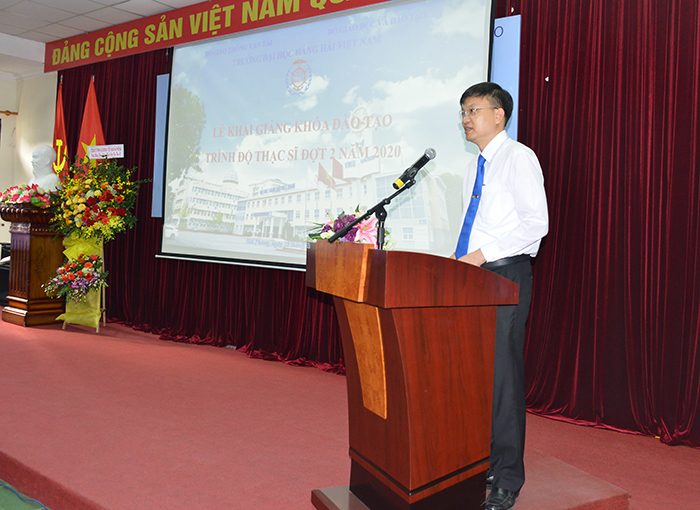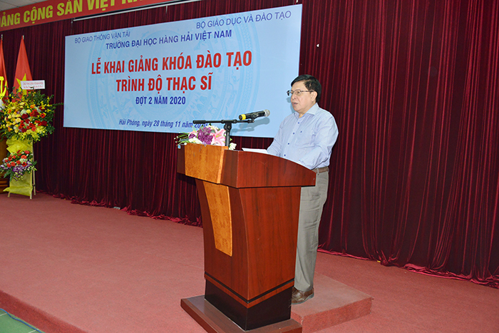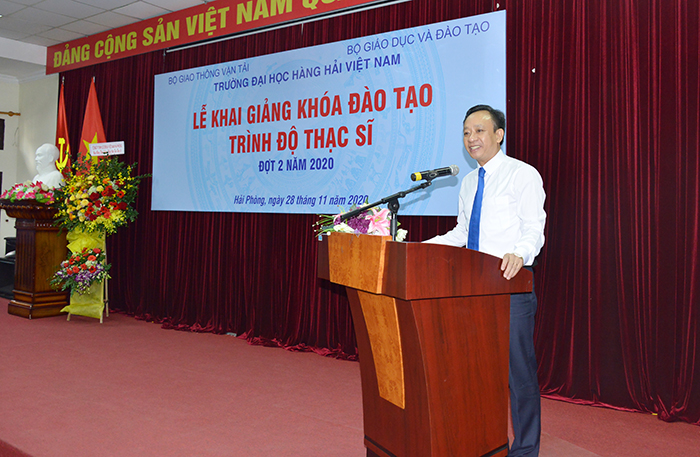 Phát biểu tại Lễ Khai giảng, PGS.TS Phạm Xuân Dương – Phó Bí thư Đảng ủy, Hiệu trưởng Nhà trường chúc mừng 212 học viên cao học đã trúng tuyển vào khóa đào tạo trình độ Thạc sĩ tại một trường có bề dầy lịch sử gần 65 năm trưởng thành và phát triển. Nhằm đảm bảo chất lượng đào tạo, Trường Đại học Hàng hải Việt Nam đã áp dụng chuẩn đầu ra B2 tiếng Anh từ năm 2017 cũng như siết chặt vấn đề “Liêm chính học thuật” đối với tất cả các học viên cao học.