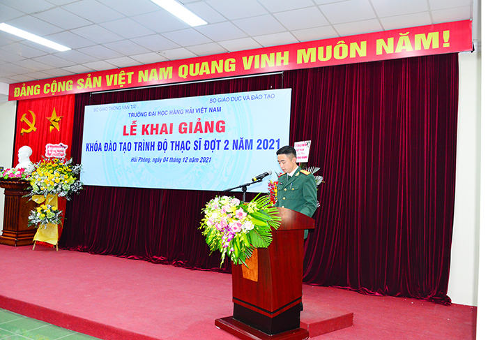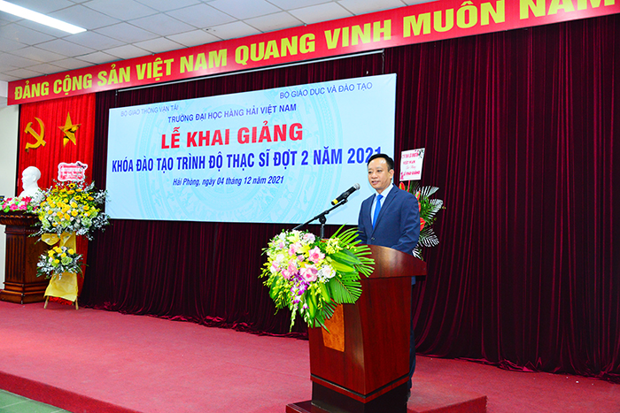 Chiều 04/12/2021, Trường Đại học Hàng hải Việt Nam tổ chức Lễ Khai giảng khóa đào tạo trình độ Thạc sĩ đợt 2 năm 2021 cho các học viên trúng tuyển. Tham dự Lễ Khai giảng có PGS.TS Nguyễn Khắc Khiêm – Bí thư Đảng ủy, Chủ tịch Hội đồng Trường; PGS.TS Phạm Xuân Dương – Phó Bí thư Đảng ủy, Hiệu trưởng Nhà trường; Bà Lê Thị Thủy - Trưởng Bộ phận Đào tạo, Công ty LG Display Việt Nam Hải Phòng ; lãnh đạo các Khoa chuyên môn tham gia trực tiếp vào công tác đào tạo, giảng dạy, hướng dẫn các học viên cùng 70/183 học viên cao học trúng tuyển đợt 2 năm 2021. Trước diễn biến phức tạp của đại dịch Covid-19, Trường Đại học Hàng hải Việt Nam đảm bảo tuân thủ chặt chẽ các yêu cầu về phòng chống dịch bệnh.