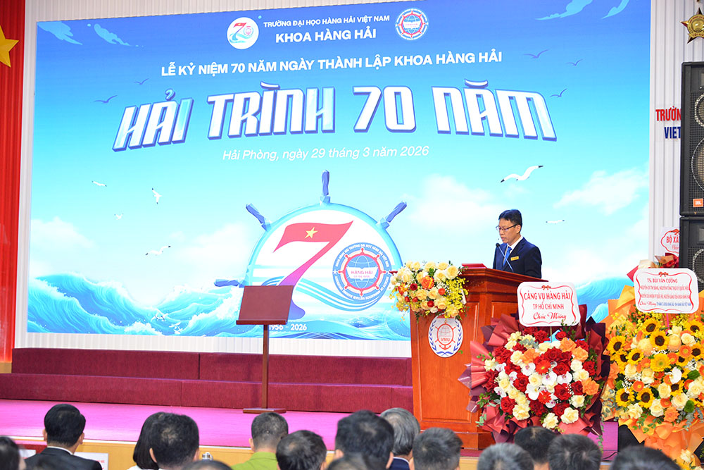 Sáng 29/3/2026, Khoa Hàng hải, Trường Đại học Hàng hải Việt Nam đã long trọng tổ chức Lễ kỷ niệm 70 năm ngày thành lập (01/4/1956 - 01/4/2026). Đây là sự kiện có ý nghĩa đặc biệt quan trọng, nhằm ôn lại chặng đường xây dựng và phát triển đầy tự hào, tri ân các thế hệ cán bộ, giảng viên, sinh viên và học viên đã đóng góp cho sự nghiệp đào tạo, nghiên cứu khoa học; đồng thời tăng cường kết nối, mở rộng hợp tác với các cơ quan, doanh nghiệp và đối tác trong và ngoài nước.