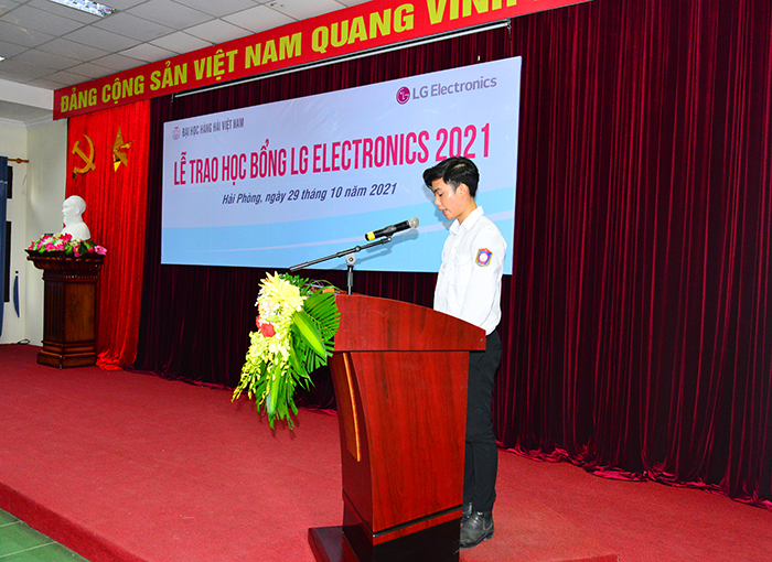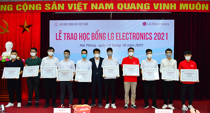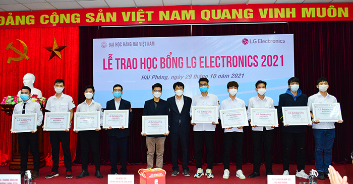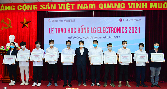 Sáng ngày 29/10/2021, tại Trường Đại học Hàng hải Việt Nam, Công ty LG Electronics Việt Nam Hải Phòng (LGEVH) đã tổ chức trao học bổng cho 49 sinh viên xuất sắc theo chương trình “LG Scholarship”. Đây là năm thứ 3 liên tiếp Công ty cấp học bổng cho sinh viên của Trường, thể hiện sự quan tâm rất lớn của Công ty đến sự nghiệp đào tạo nguồn nhân lực của Nhà trường.