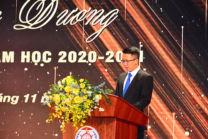 Đồng chí Nguyễn Lê Mạnh Cường -  Phó Bí thư Đoàn trường công bố Quyết định khen thưởng đối với 198 sinh viên tiêu biểu trong đó về lĩnh vực học tập có 101 sinh viên; lĩnh vực Olympic và nghiên cứu khoa học có 66 sinh viên; Công tác Đoàn - Hội và phong trào sinh viên, văn hóa, văn nghệ, thể dục thể thao có 31 sinh viên. Đây là những gương mặt ưu tú có thành tích xuất sắc trong học tập, Olympic, nghiên cứu khoa học, văn hóa văn nghệ, thể dục thể thao, các sinh viên là lớp trưởng, bí thư, tham gia các câu lạc bộ.