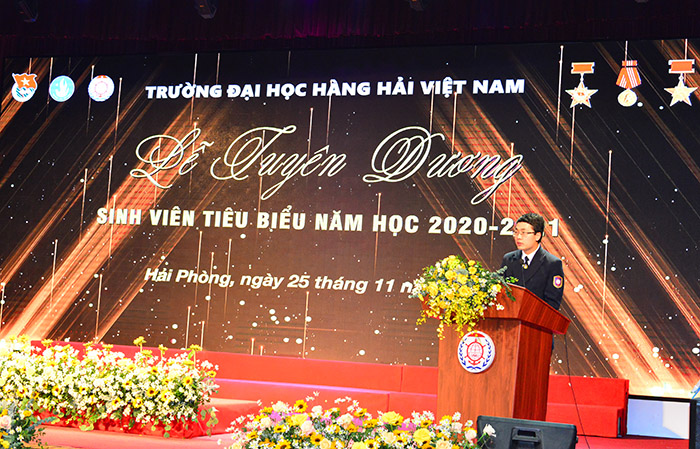 Phát biểu tại buổi Lễ, PGS.TS. Phạm Xuân Dương - Phó Bí thư Đảng ủy, Hiệu trưởng Nhà trường biểu dương những thành tích xuất sắc của 198 sinh viên. Trải qua hơn 65 năm xây dựng, hội nhập và phát triển, Trường Đại học Hàng hải Việt Nam đã đạt được những thành tích rất đáng tự hào góp phần phục vụ cho sự nghiệp phát triển kinh tế - xã hội, đảm bảo an ninh - quốc phòng của thành phố Hải Phòng, ngành Giao thông vận tải và đất nước. Vinh quang thuộc về các thế hệ cán bộ, giảng viên, sinh viên nối tiếp đã và đang cần mẫn, tận tâm ngày đêm đóng góp quan trọng và quyết định đến việc ươm trồng lớp lớp các nhà quản lý và chuyên gia cho đất nước. Thầy cũng mong muốn, các em sinh viên tiếp tục phát huy và cố gắng hơn nữa, làm nhân tố để lan tỏa và thúc đẩy phong trào học tập, rèn luyện của sinh viên trong toàn Trường. Thành tích đạt được như ngày hôm nay là cả một quá trình dài phấn đấu và nỗ lực hết mình của các em.