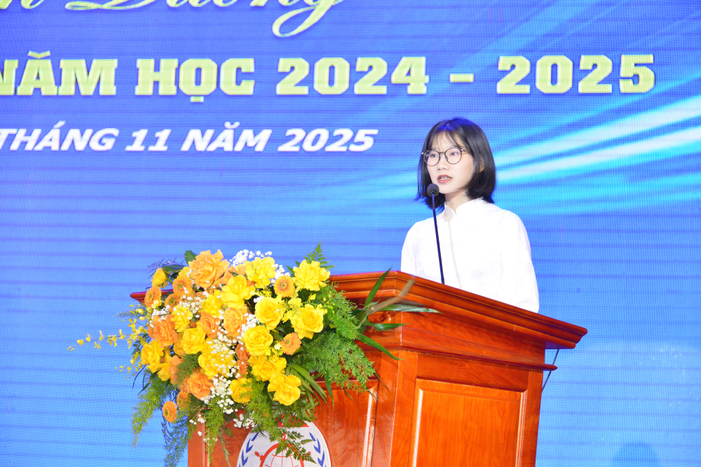 Thay mặt 214 sinh viên tiêu biểu được khen thưởng, sinh viên Phạm Thị Mai Hương - Lớp LQC64ĐH, Khoa Kinh tế đã chia sẻ cảm xúc trong buổi lễ: “Chúng ta đang ở trong những năm tháng đẹp nhất, ý nghĩa nhất của tuổi trẻ. Thời gian này là cơ hội vàng để chúng ta định hình tương lai. Hãy dám dấn thân vào những điều mới mẻ, và đừng bao giờ sợ thất bại. Hãy nhớ rằng, mỗi lần vấp ngã là một bài học đắt giá, là một dấu mốc không thể thiếu để chúng ta trở nên mạnh mẽ và trưởng thành hơn. Hãy sống một tuổi trẻ thật rực rỡ và có ích: học hết mình, khám phá hết mình, và cống hiến hết mình. Chúng ta hãy tin tưởng và kiên trì nỗ lực mỗi ngày, để tương lai nhất định sẽ dành tặng chúng ta những thành quả xứng đáng nhất.”
