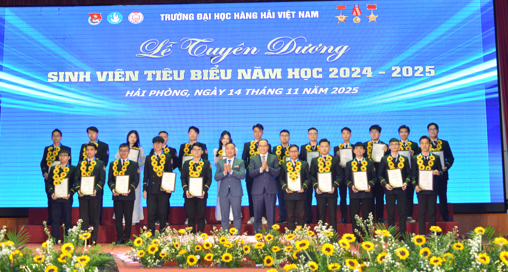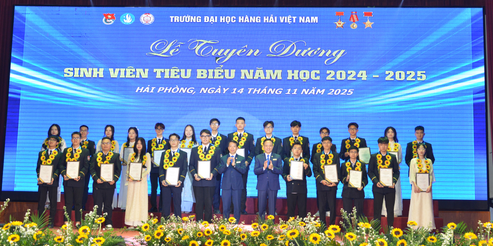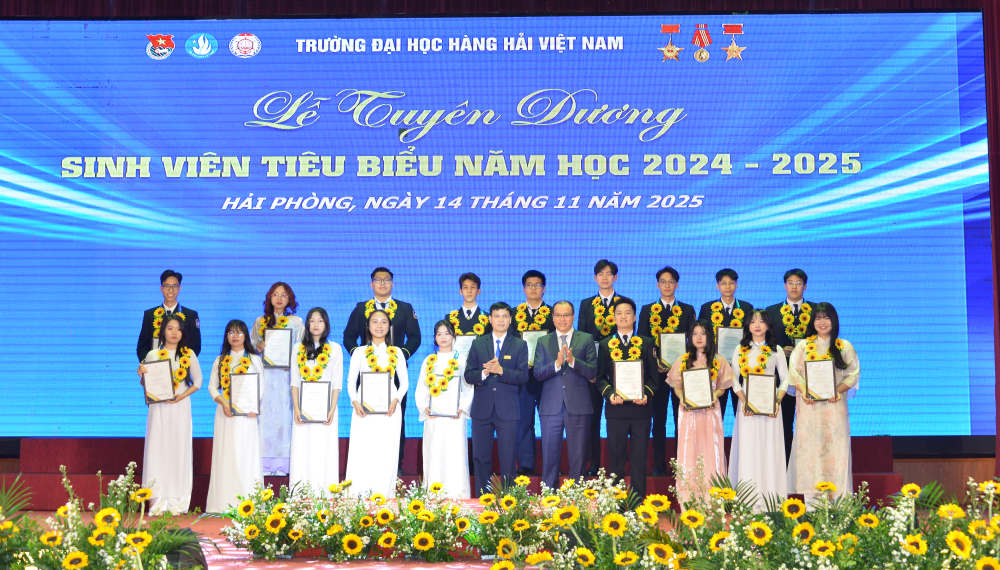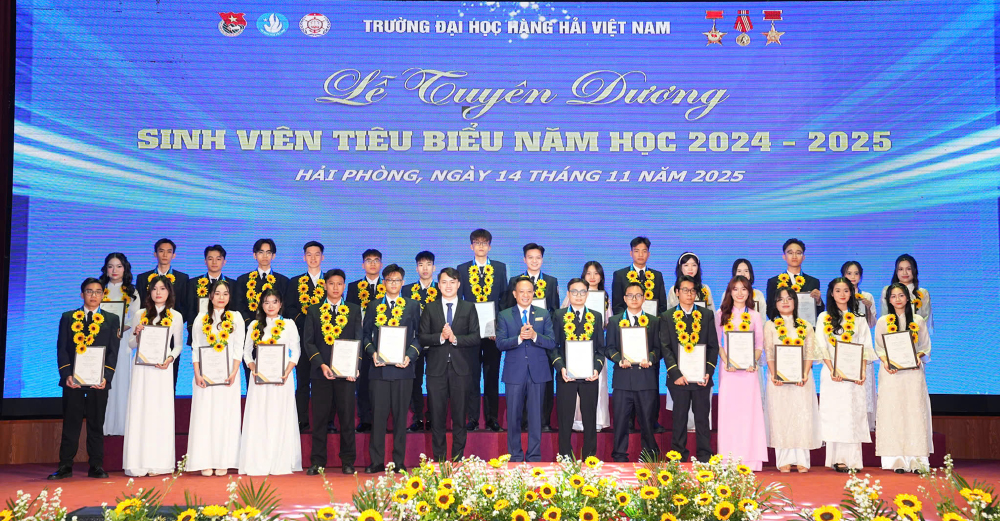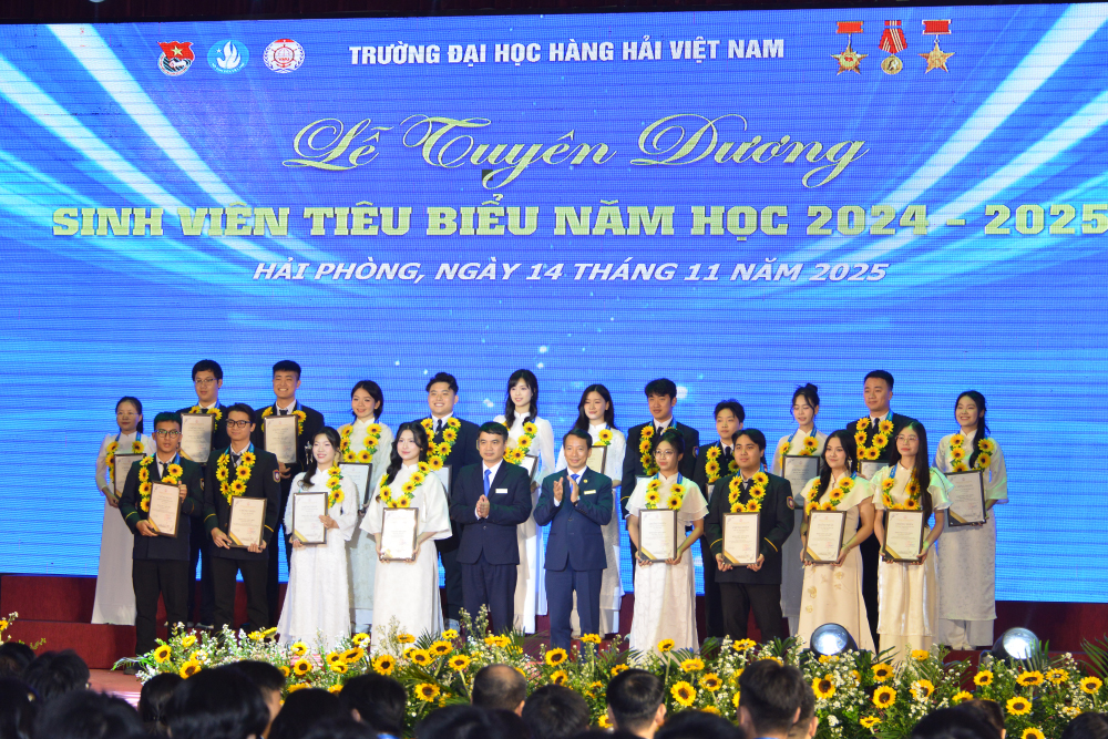 Tối 14/11/2025, tại Hội trường A8, Trường Đại học Hàng hải Việt Nam đã tổ chức: “Lễ tuyên dương sinh viên tiêu biểu năm học 2024-2025” nhằm biểu dương, khen thưởng 214 gương mặt sinh viên tiêu biểu, đạt các thành tích xuất sắc trong các lĩnh vực học tập, nghiên cứu khoa học, thi Olympic, văn hóa văn nghệ, thể dục thể thao, công tác Đoàn - Hội, góp phần tạo động lực để sinh viên Nhà trường tiếp tục nỗ lực phấn đấu đạt thành tích cao hơn nữa trong những năm học tới đồng thời góp phần tô thắm thêm bảng vàng thành tích của Nhà trường.