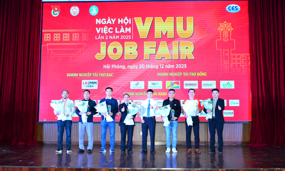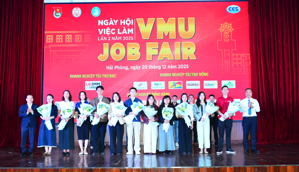 Sáng 20/12/2025, Trường Đại học Hàng hải Việt Nam đã tổ chức Ngày hội việc làm lần 2 năm 2025 - VMU Job Fair, với sự tham gia của Trung tâm Dịch vụ việc làm Hải Phòng và 38 doanh nghiệp có uy tín trong và ngoài nước.