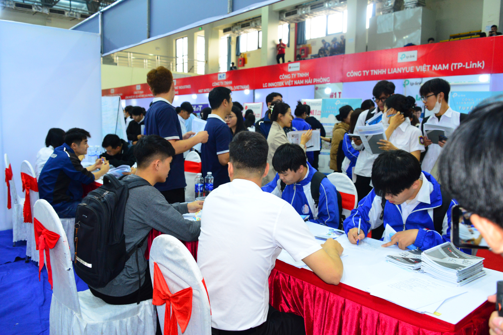Ngay từ sáng sớm, gần 2.000 lượt sinh viên năm cuối, cựu sinh viên và người lao động có nhu cầu tìm việc làm trên địa bàn thành phố Hải Phòng đã tham dự, trực tiếp tìm hiểu, kết nối và tham gia phỏng vấn với các nhà tuyển dụng tại gian hàng của từng doanh nghiệp. Các ứng viên chủ động chuẩn bị hồ sơ cá nhân, trao đổi trực tiếp với doanh nghiệp, qua đó hiểu rõ hơn về yêu cầu của thị trường lao động và định hướng nghề nghiệp cho tương lai. Kết quả, hơn 500 ứng viên đã được các doanh nghiệp tuyển dụng vào các vị trí làm việc toàn thời gian, bán thời gian và thực tập sinh.