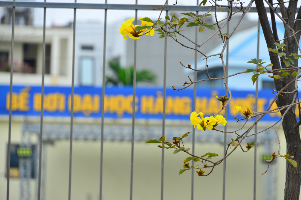 Cây Phong linh vàng rực dưới góc bể bơi Hàng hải - một khoảng trời bình yên giữa nhịp sống sôi động