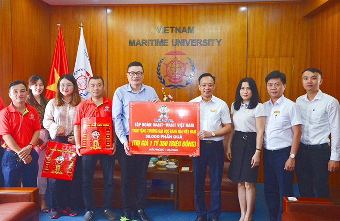Sáng 16/6/2020, Ngài Chen Han Hua - Tổng Giám đốc Công ty TNHH Thương mại Want Want Việt Nam đến thăm và trao tặng 36.000 gói bánh gạo với tổng trị giá 1,35 tỷ đồng cho cán bộ, giảng viên và sinh viên Trường Đại học Hàng hải Việt Nam. Tiếp đoàn có PGS.TS Phạm Xuân Dương – Hiệu trưởng Nhà trường cùng lãnh đạo một số Phòng, Ban chức năng.