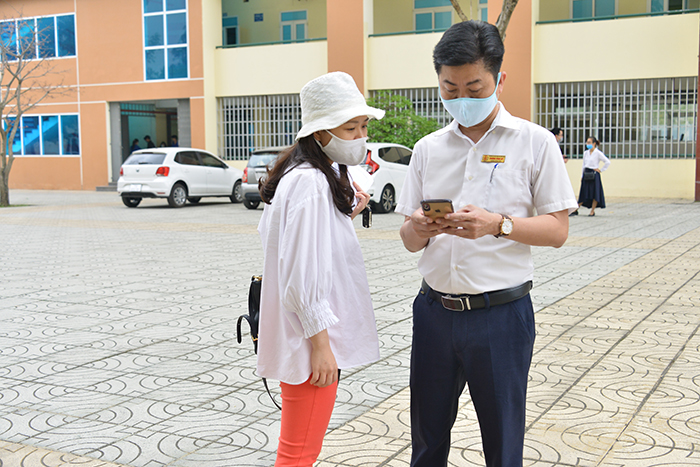 Một số sinh viên cũng được hướng dẫn khai báo y tế điện tử.