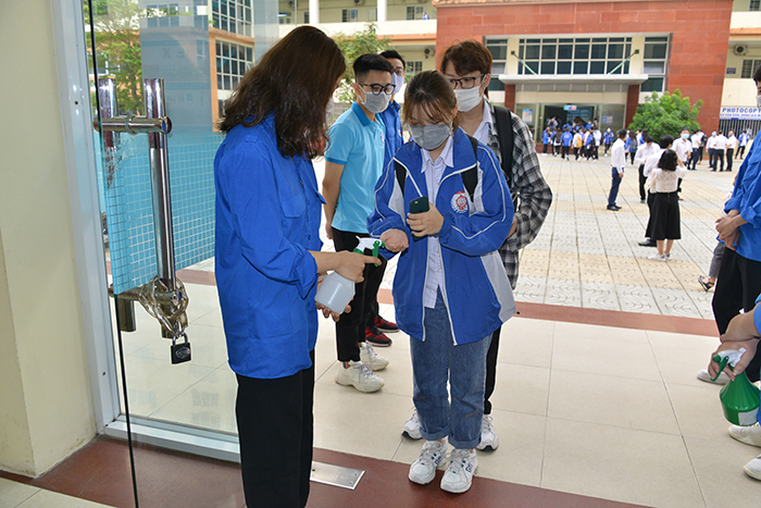 Công tác xịt khuẩn được các bạn sinh viên tình nguyện hỗ trợ tận tình